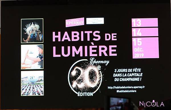 香檳大道委員會所舉辦的一年一度的香檳大盛典《香檳燈光節Habits de Lumière》, 2019年正巧是20周年,為期三天的活動吸引近50,000人聚集在埃佩爾奈(Epernay)參加慶祝活動,其中包含遊行、晚上的燈光秀、廚師與香檳料理搭配的研討會及參觀酒莊酒窖。這次行程規劃,特地從巴黎到香檳的藝術與酒莊之旅。